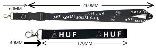 Lanyard mide en su totalidad de extremo a extremo 52 cm. De arriba del mosquetón hasta donde acaba es una medida de 6 cm. seguido esto desde el tiptop (contabilizando el broche) hacia abajo existe una medida total de 46 cm.